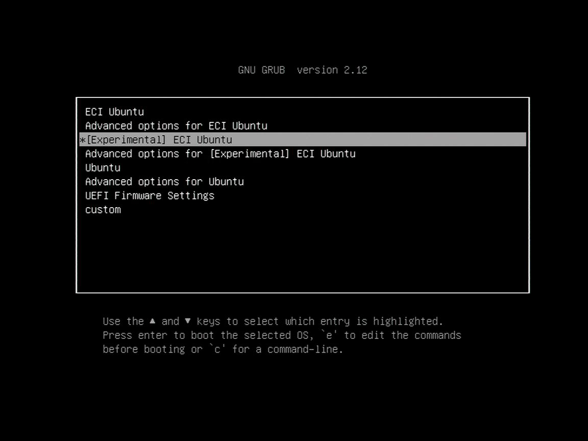 Select [Experimental] ECI Ubuntu booting after rebooting.