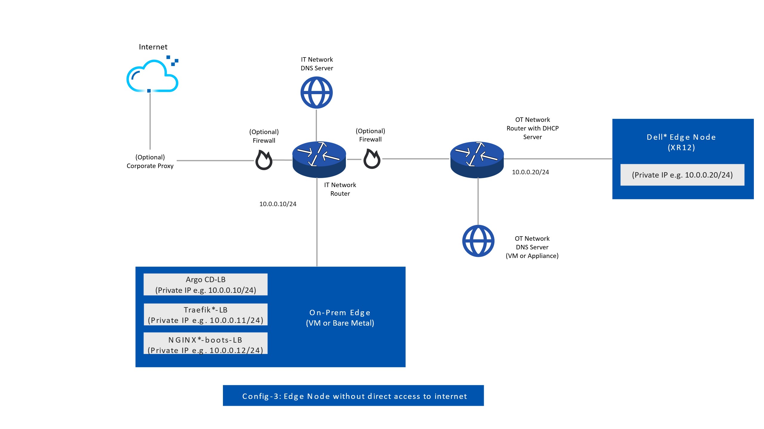 Edge Orchestrator Network Topology with Corporate Proxy#