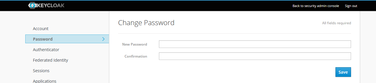 Set a new password and confirm, then Save: