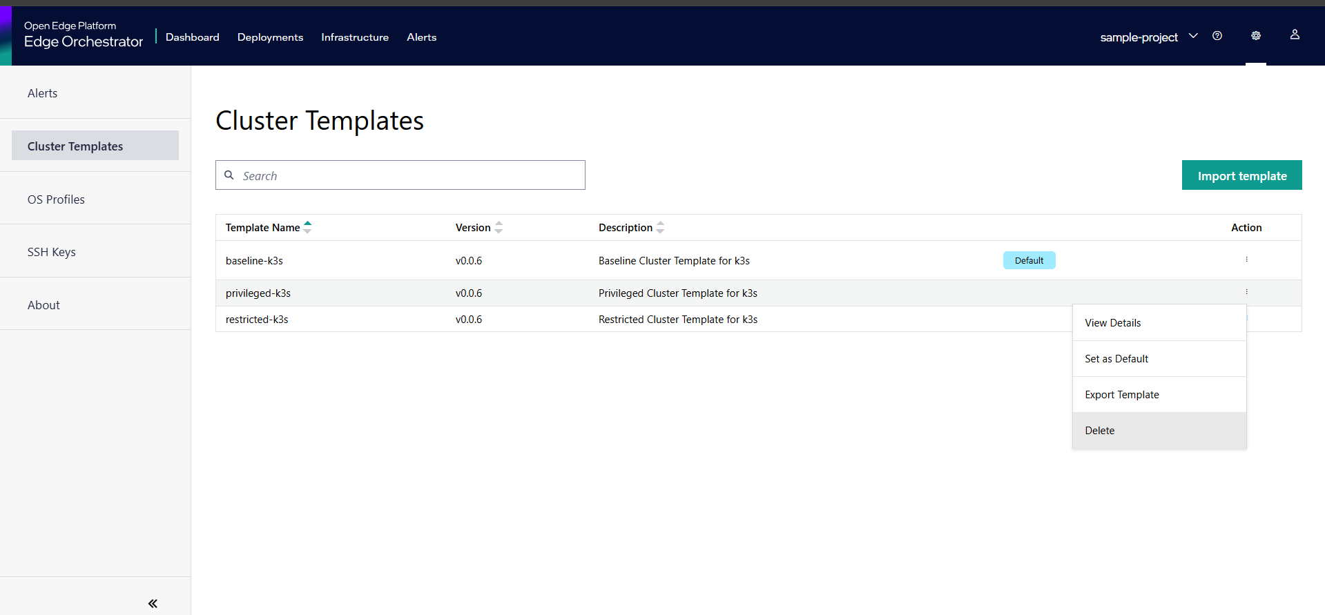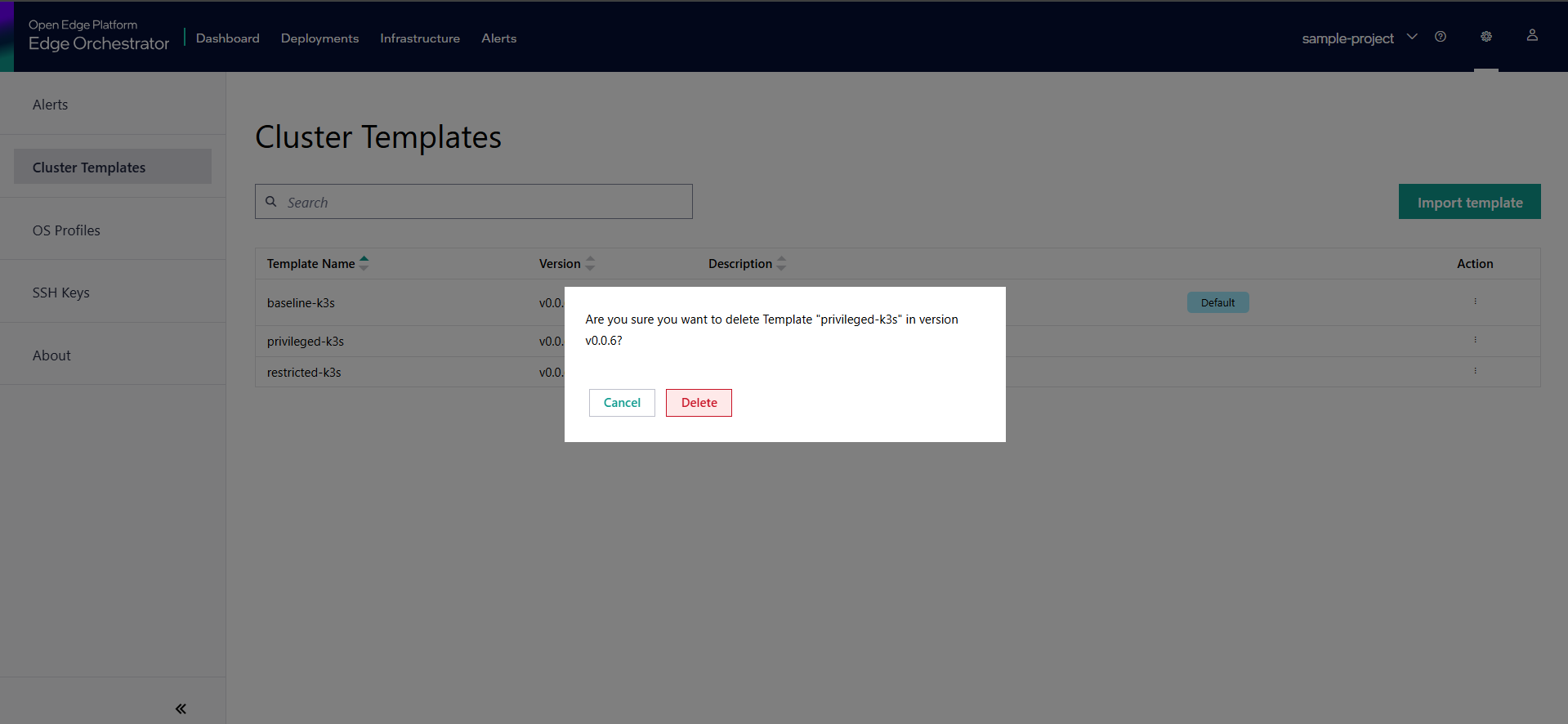 You can delete a previously imported cluster template.