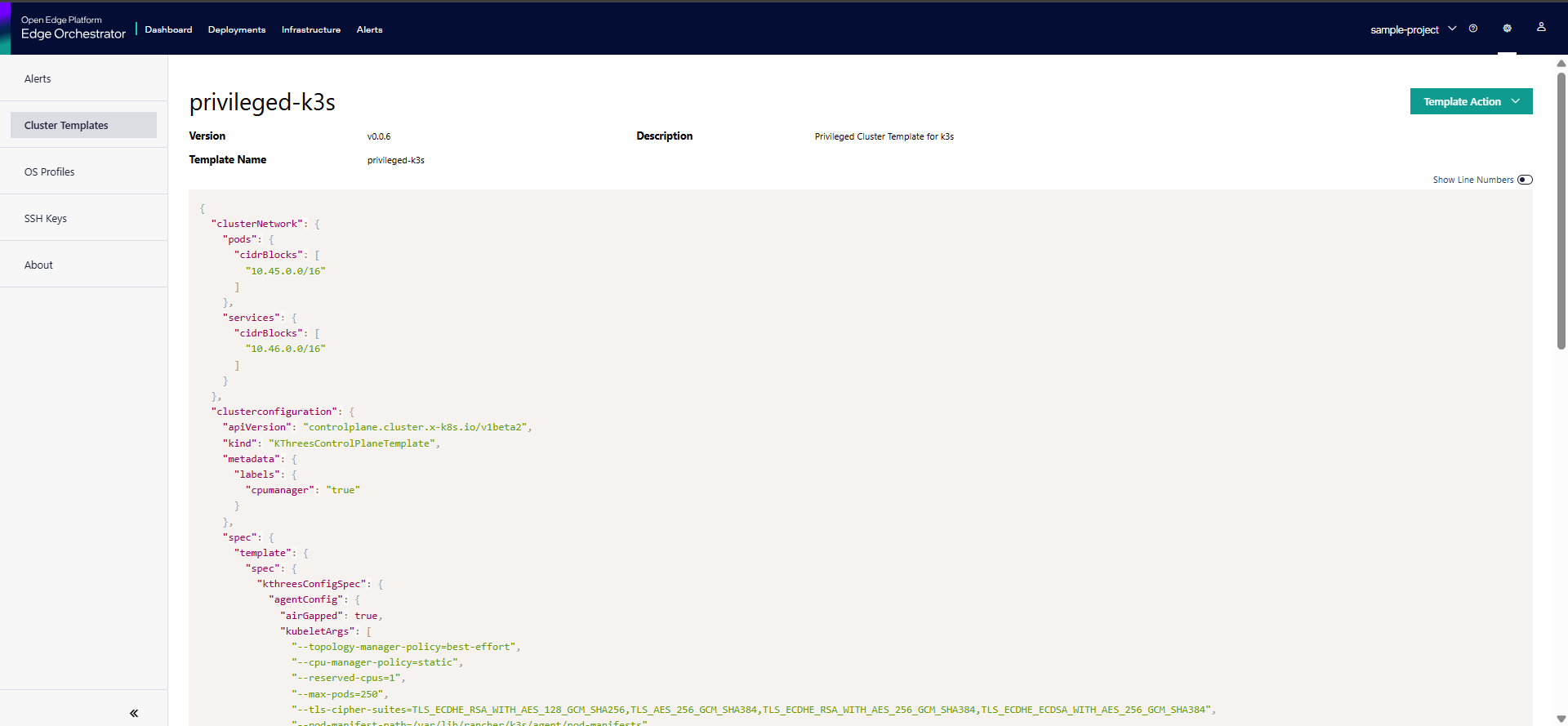 Click the three-dot (…) icon in the Actions column and select Details. The cluster template details page appears.