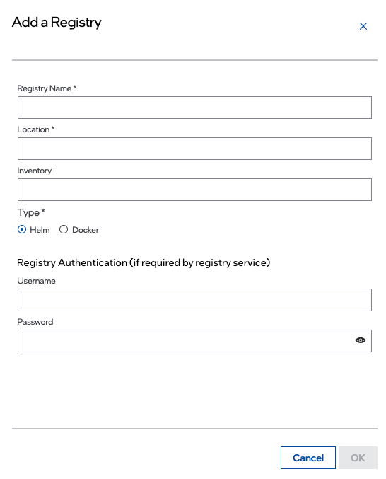 Select if the type of registry is Helm* or Docker.