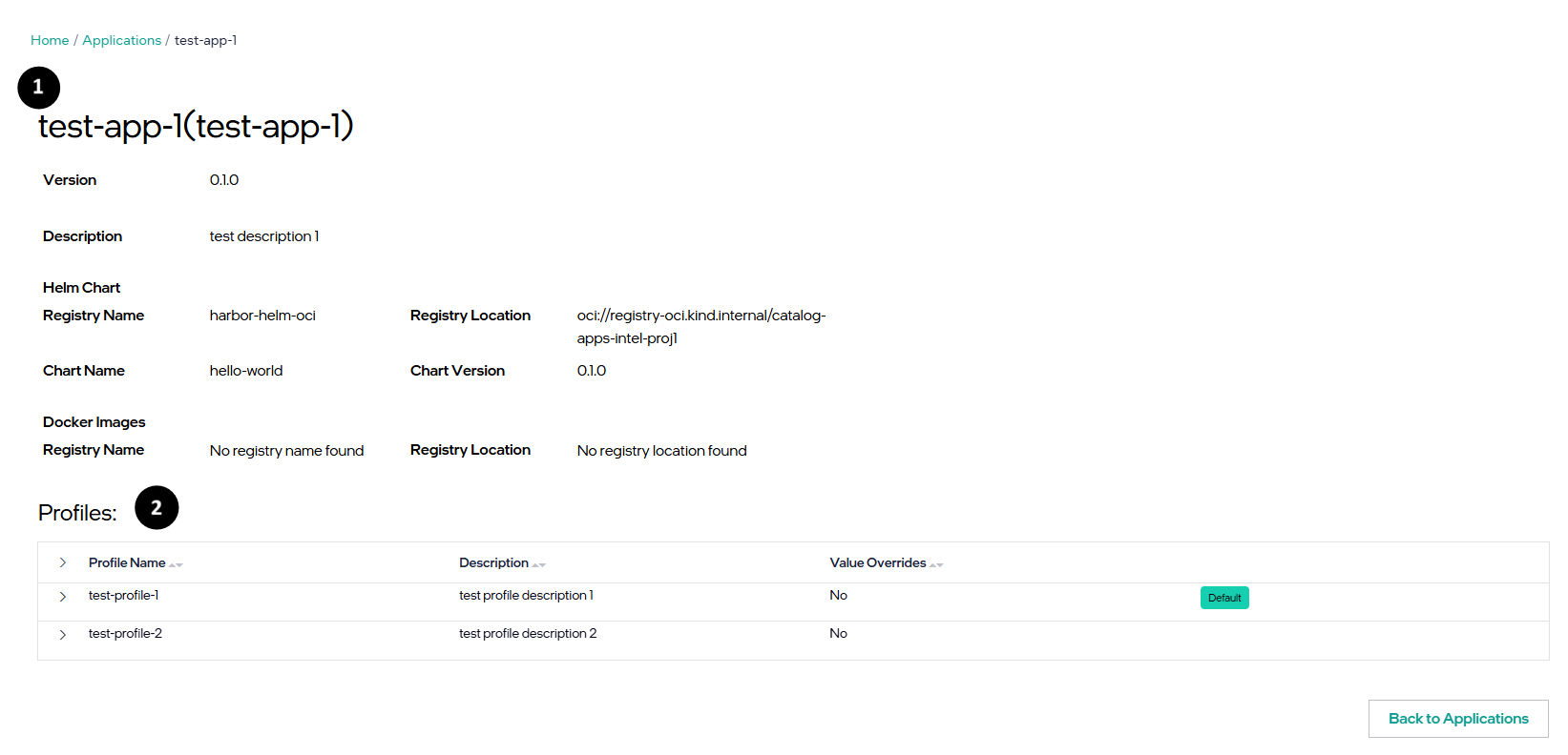 You can view the application details, including the details of the application and the profiles associated with it. To view the details of an application package, do the following: