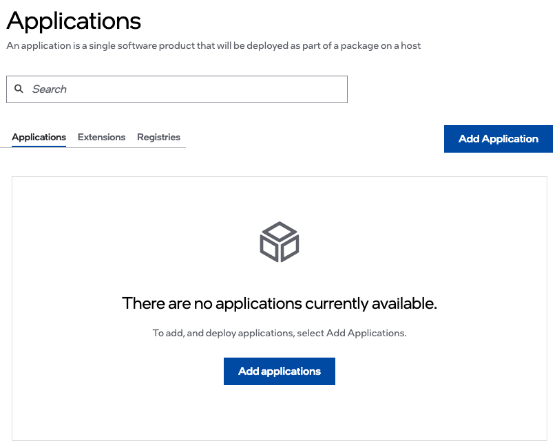 Applications - Displays the list of user provided applications that are available for deployment. (The list is empty until a user adds an application)