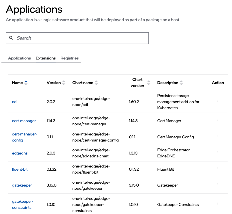 Extensions - Displays the list of system provided extensions that are available for deployment. (The list is populated with many preconfigured applications. You cannot add or delete applications from this list).