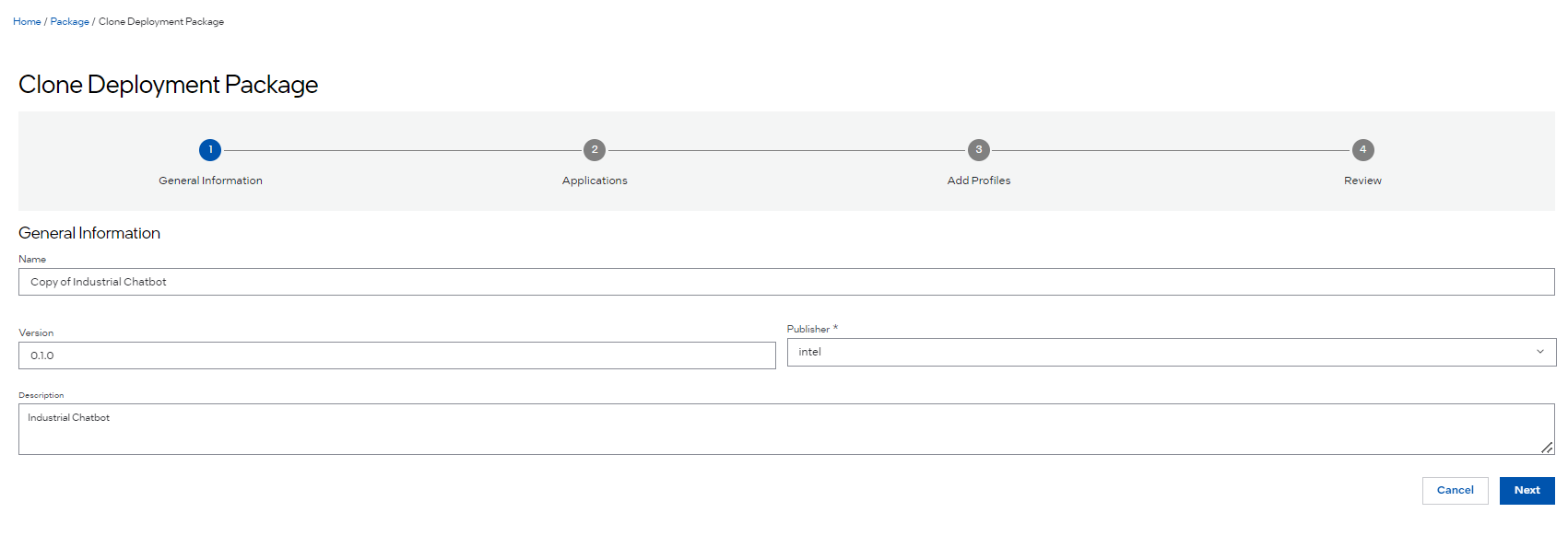An updated name of the deployment package appears by default. Updating the other details are optional.