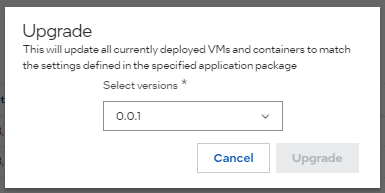 In the Upgrade page, select the version you want to upgrade to. The Upgrade window gives the list of Deployment Package versions for the selected Deployment.