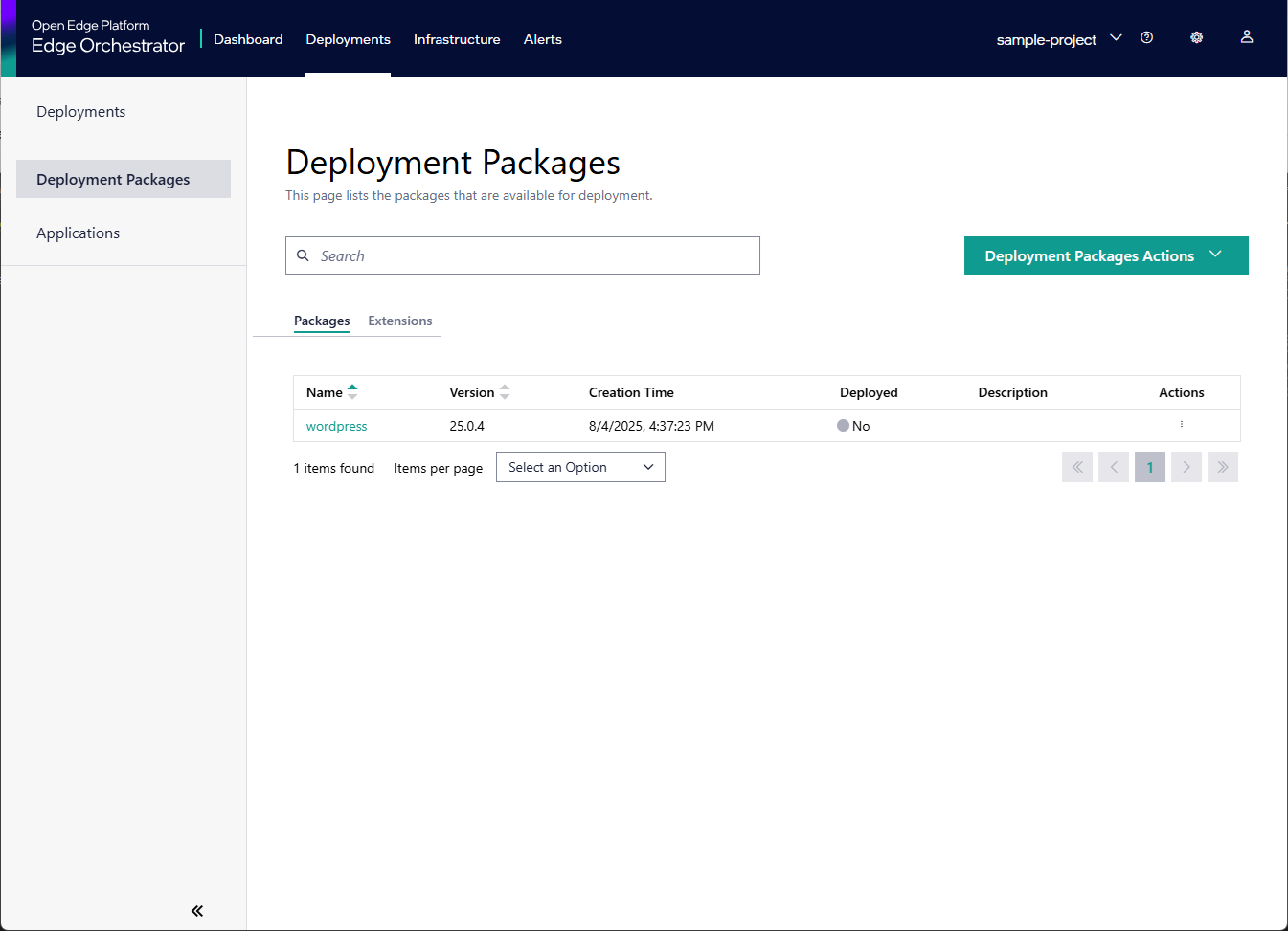 Note: Some Helm Charts publicly available on the Internet may require features that you have not yet configured in Edge Manageability Framework. For example, some charts may require a Load Balancer. This is particularly common in Bitnami charts, such as the Wordpress chart that is used in the example below. In this case, you will need to first configure a Load Balancer before the package can be deployed.