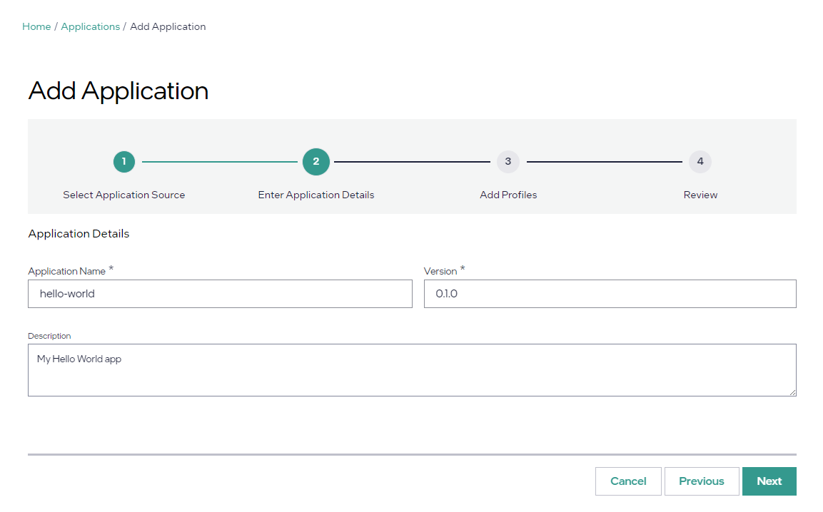 For details on adding applications, see Add Application.