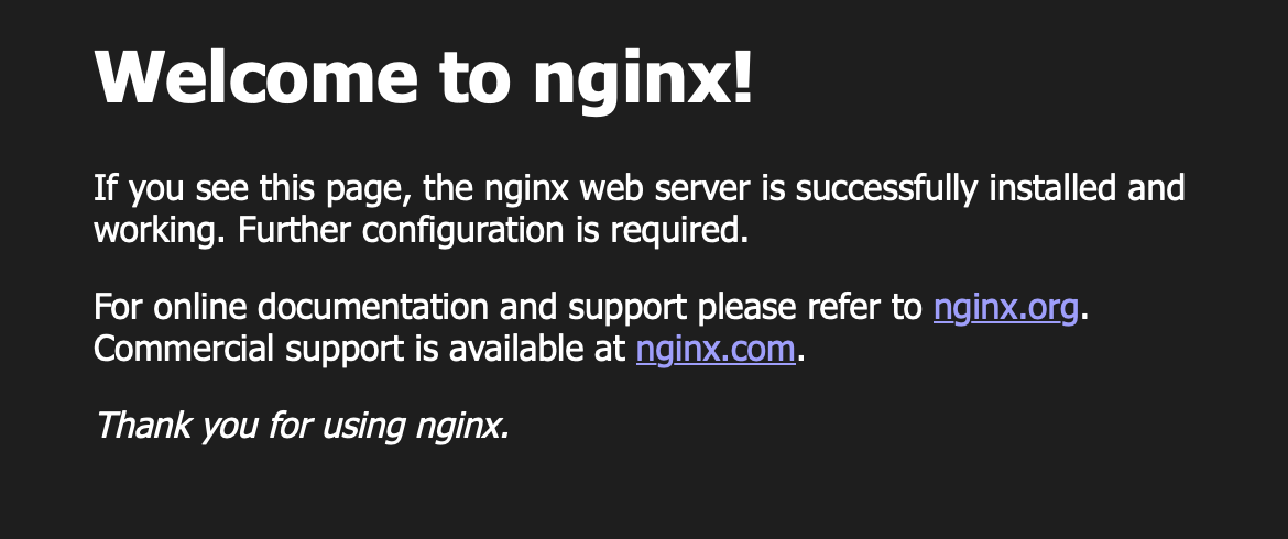 In the Endpoints list at bottom, the “80(TCP)” value is a link; the service annotation you added to the Helm chart instructed Edge Manageability Framework to create this link in the UI. Click on it to see the welcome screen served by the application pod:
