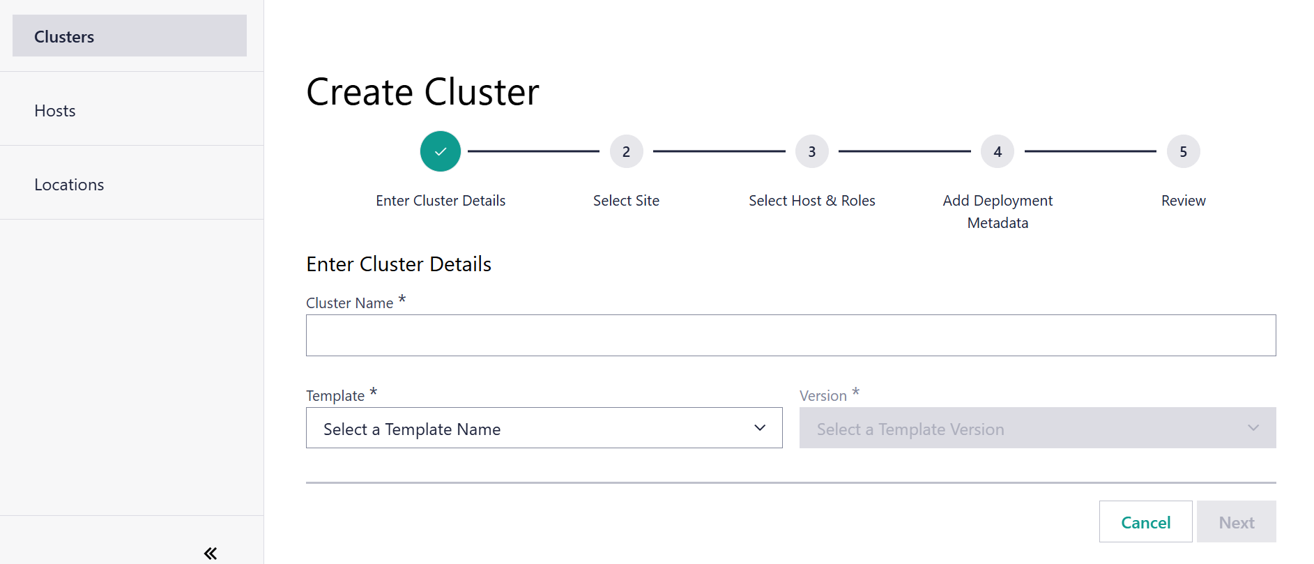 On the Cluster List page, click Create Cluster. The Create Cluster page appears.