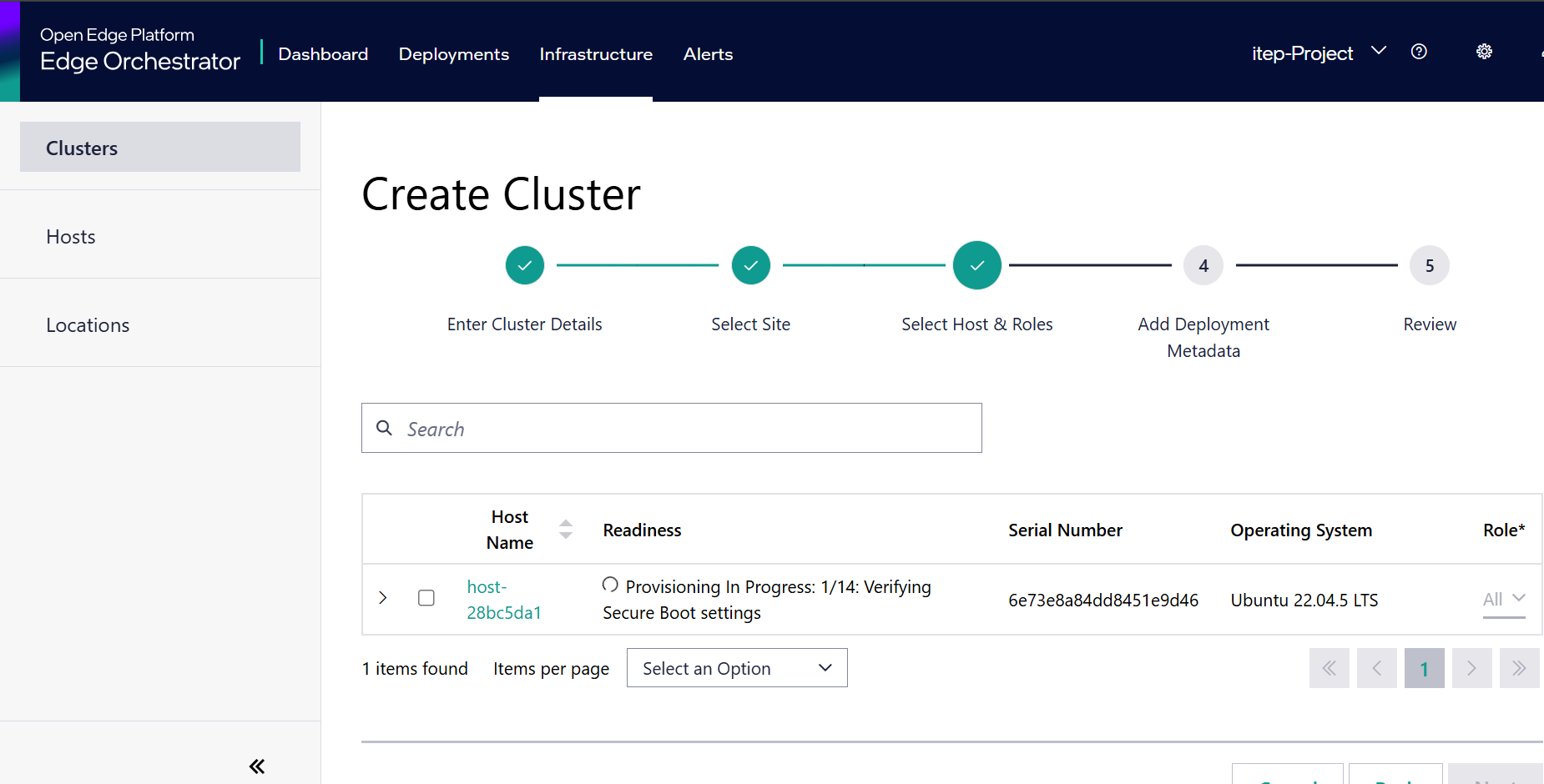 You may also select the Role that each host is assigned. The role selected here dictates which Kubernetes components are run on the host. Currently, only the All role, hosts both the Kubernetes control plane services and user applications, is supported for single-node clusters.