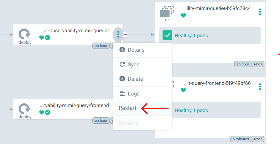 query-frontendDeployment (ReplicaSet) and restart itif the issue persists, restart the