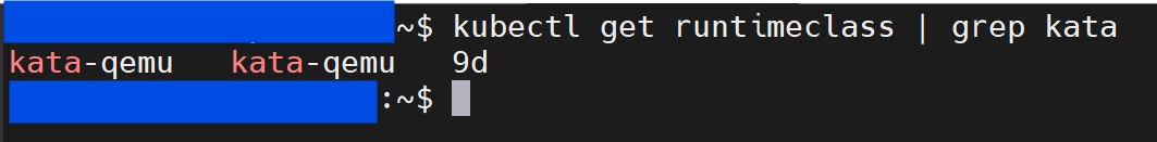 # verify runtime class kubectl get runtimeclass | grep kata