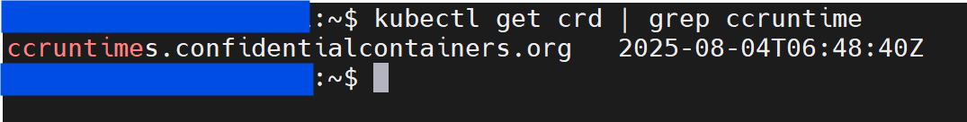 Verify CRD installation: The operator creates the ccruntime CRD as can be observed in the following command: